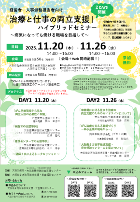 「治療と仕事の両立支援」~病気になっても働ける職場を目指して~ ハイブリッドセミナーのご案内